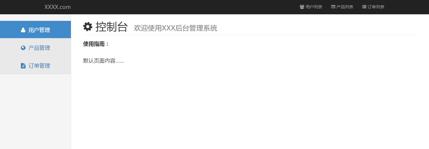 h1 class="page-header">i class="fa fa-cog fa-spin">/i>nbsp;控制臺small>nbsp;nbsp;nbsp;歡迎使用XXX后臺管理系統/small>/h1>