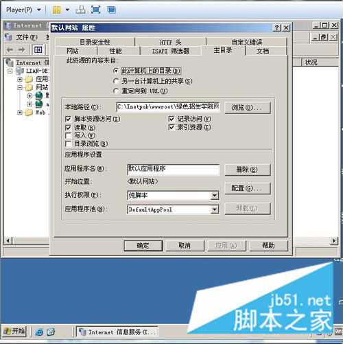 點擊文檔。把啟用默認(rèn)內(nèi)容文檔的都刪除,從新添加index.asp。之后其他就確定。完成。