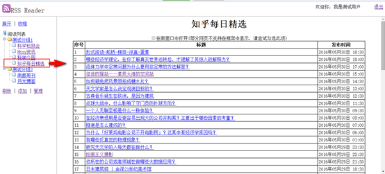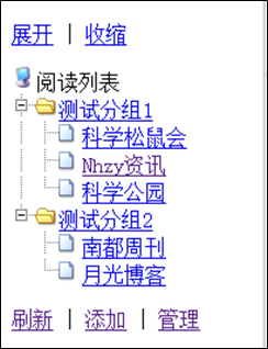 添加完成后,關閉對話框,左邊列表會自動刷新,點擊展開顯示已添加的RSS源: