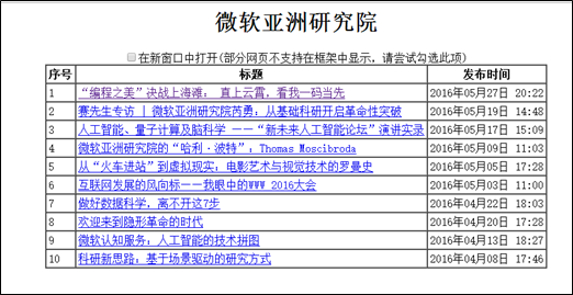 文章內容未做任何處理直接顯示原文,簡單方便。但是有些文章不支持在框架中顯示,這時需要勾選"在新窗口中打開"的選項,使文章在新開的瀏覽器窗口中顯示。