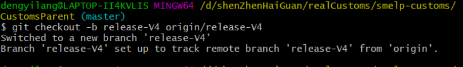 三、執行切換分支的命令 git checkout -b release-v4 origin/release-v4
