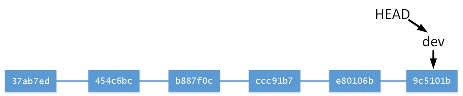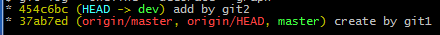 分支樹為(此時分支為(no branch, rebasing dev)):
