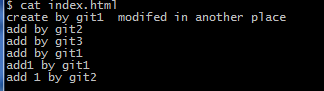 git1拉取最新代碼后,在index中添加“add by git1 add1 by git1”,如下:
