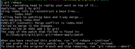 然后執行rebase發生沖突: