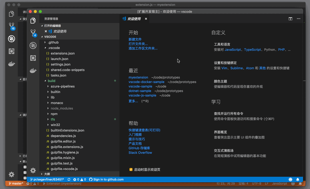 VSCode 運行插件,現在我們對這個插件的實現方式和注冊方式已經有了了解,下面就到了運行和調試代碼的時候了。VS Code 的插件代碼腳手架已經為我們提供了 launch.json ,所以我們只需要按下 F5 即可啟動代碼。