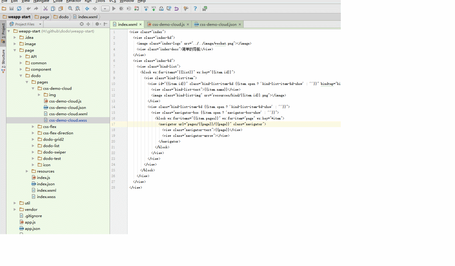 這個(gè)時(shí)候,我們只需要把問下的wxss文件,關(guān)聯(lián)成css文件,即: