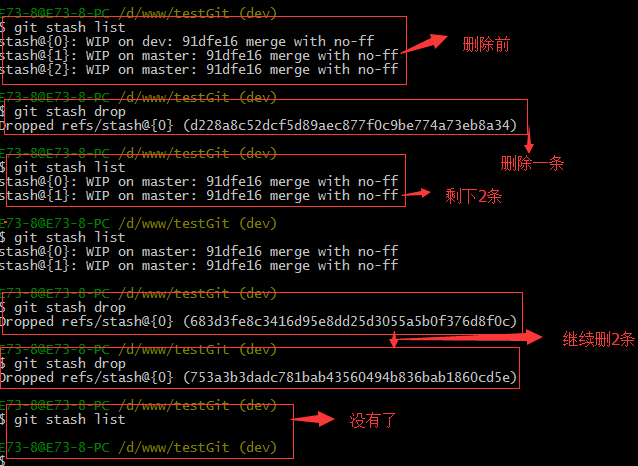 1.git stash apply恢復,恢復后,stash內容并不刪除,你需要使用命令git stash drop來刪除。