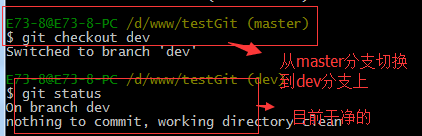 git checkout –b dev 創建dev分支 并切換到dev分支上