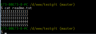比如我現在在readme.txt文件里面增加一行 內容為555555555555,我們先通過命令查看如下: