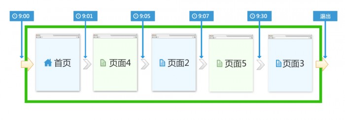 那么,這個用戶到底在頁面3上停留了多長時間呢?問題出現了,因為當前所有網站分析工具都沒有抓取用戶離開頁面3時的“時間戳”,這樣我們就無法計算該用戶到底在頁面3上停留了多長時間!因此: