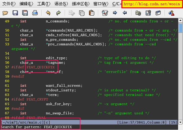再重新啟動vim, 并打開一個c程序文件, 是不是覺得眼前突然色彩繽紛了起來...