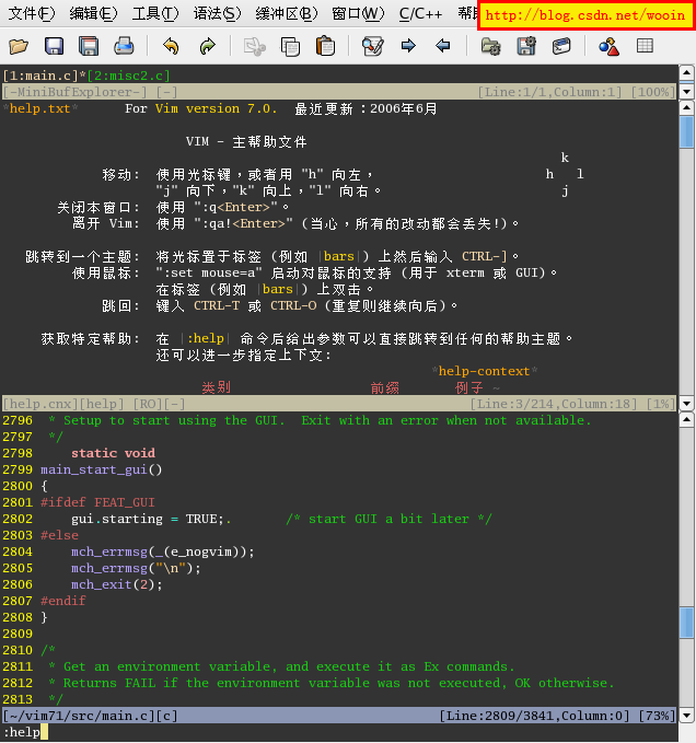 vim自帶的幫助手冊是英文的, 對平時編程的人來說沒有多大閱讀困難, 何況還有"星級譯王"呢, 可偏偏有一幫人將其翻譯成了中文, 可偏偏我又擋不住誘惑將它安裝了, 唉.......又痛失一個學習英文的好機會, 下不為例.