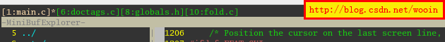 如果此時你還想再跳回剛才的位置, 你還可以按C-T>, 這樣又跳回到setmouse()函數被調用的地方了, 變量, 結構, 宏, 等等, 都可以的, 趕快試試吧.....