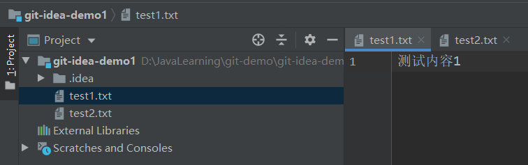 在demo1文件夾中新建test1與test2兩個文件作為demo1倉庫的初始內容,此時demo2文件夾為空