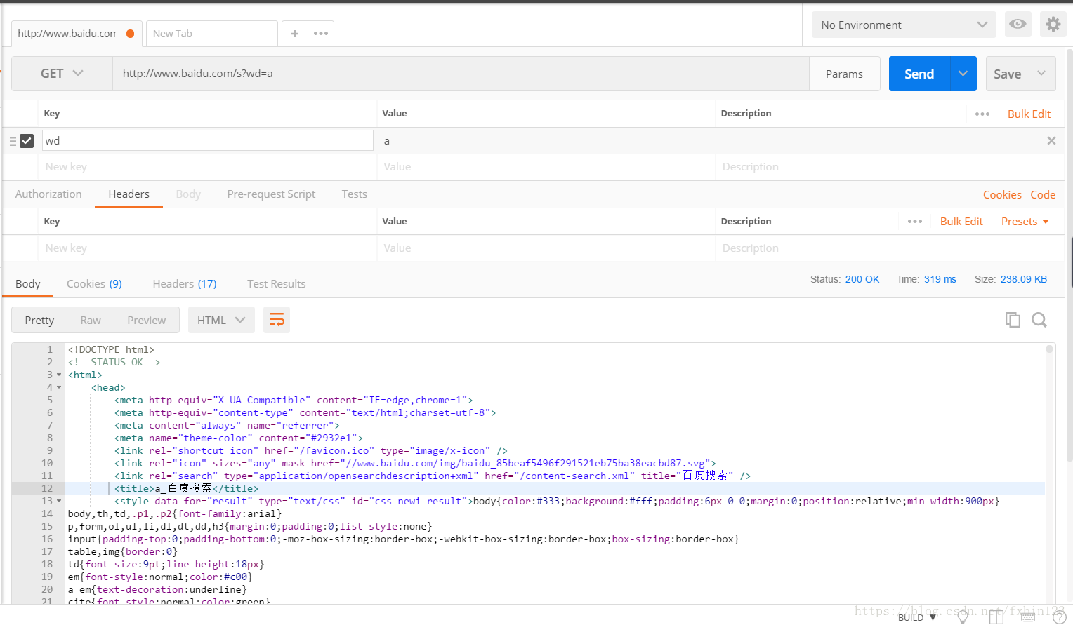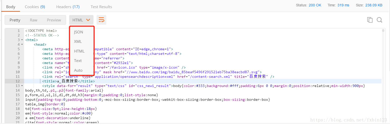 響應體示例: 響應的格式可以有多種,我這里由于請求的是 百度,so, 響應的是 html ,