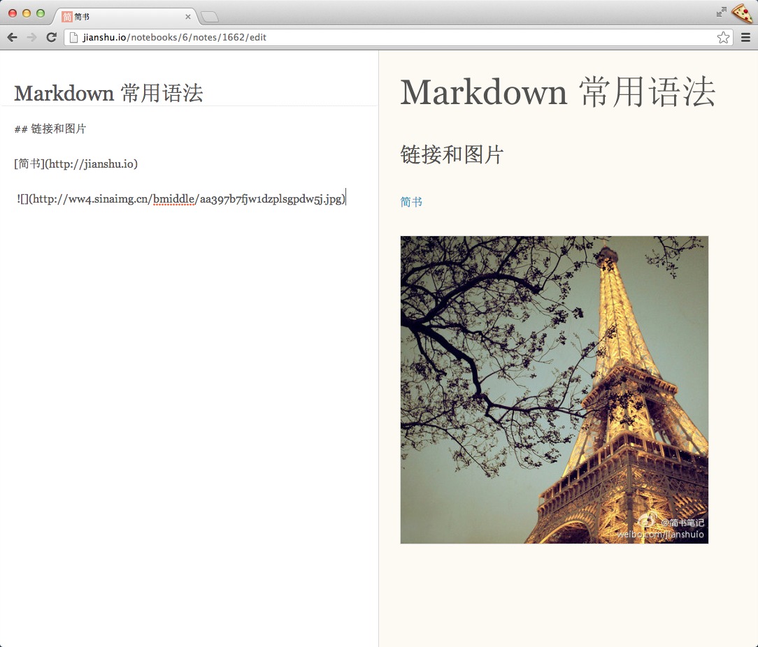 注:插入圖片的語法和鏈接的語法很像,只是前面多了一個 !。