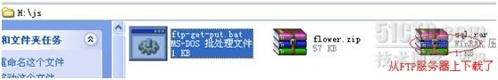 把FTP服務器中的sql.rar文件下載到XP機器上的H:\JS目錄