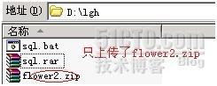 我們來看看結果,見下面兩張圖。從XP系統上看,H盤的JS目錄,多了個sql.rar,FTP服務器上的根目錄多了個flower.zip,這說明,剛才的腳本完成正常的執行了,達到了預期的目的。