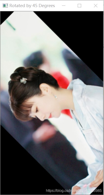 cv2.imshow("Rotated by 45 Degrees", rotated)