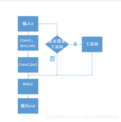 根據論文的描述,x是否需要下采樣由x與out是否大小一樣決定,