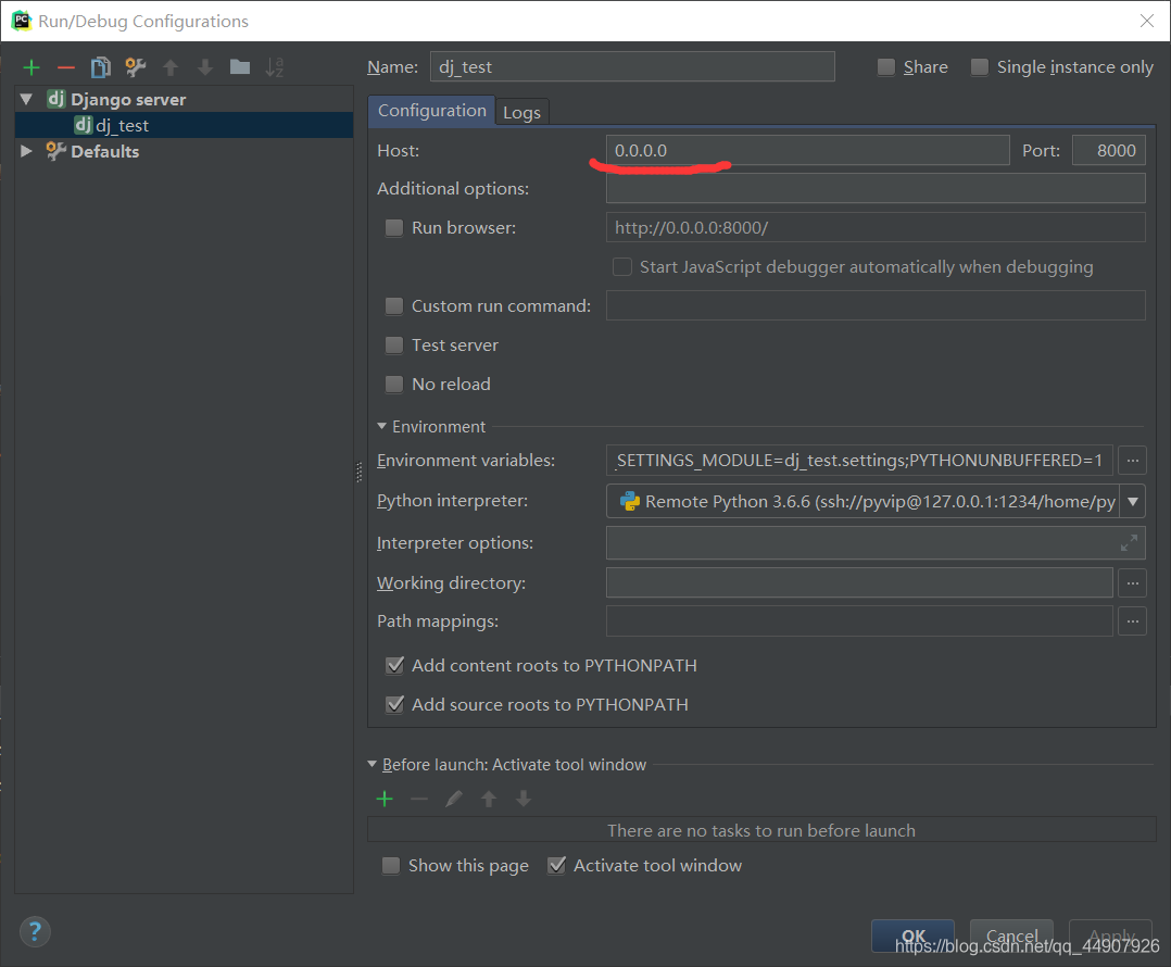 2.為Django項(xiàng)目指定遠(yuǎn)程中創(chuàng)建的虛擬環(huán)境下的python解釋器: