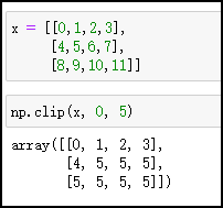 可以看到,數組x中的所有數限定到范圍0和5之間。為啥要介紹這些函數呢,接著往下看。