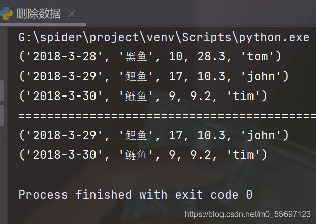 cur.execute("select * from T_fish") #對T_fish表執行數據查找命令