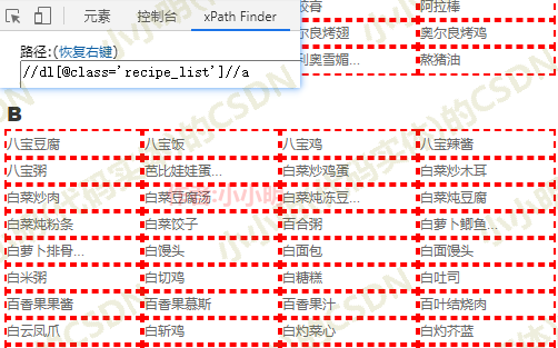 這個網站結果非常簡單,一個簡單的xpath即可獲取到所有的菜品名稱:
