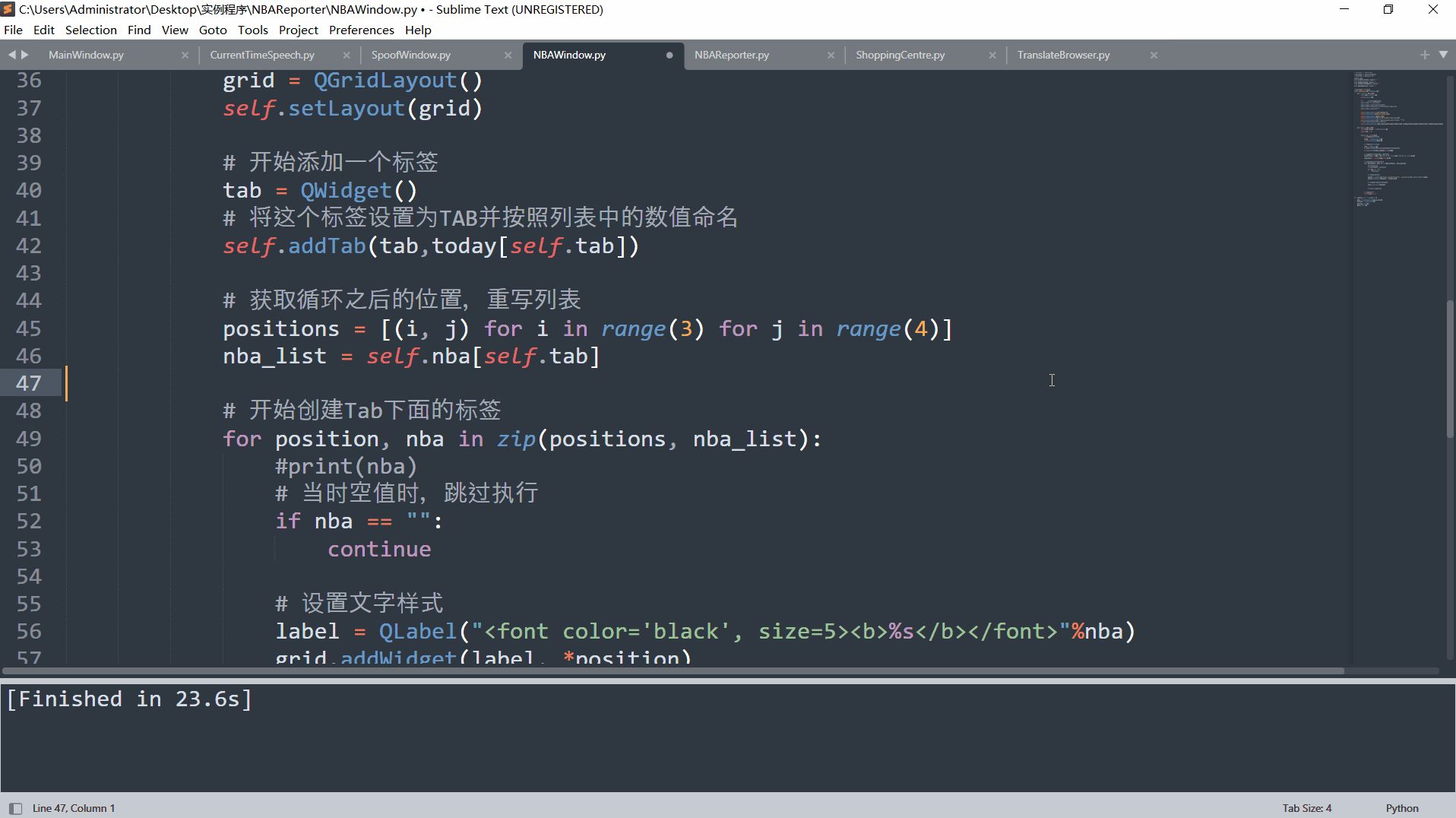 程序主邏輯如上圖所示,我們創建了一個單元布局,然后又創建了和比賽一樣的若干個標簽,最后將函數返回的列表以標簽的形式放在主窗口上面