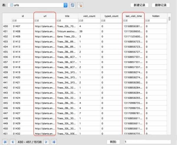 (1) 首先我們用DB Browser for SQLite來看下History中的urls表的數據組成