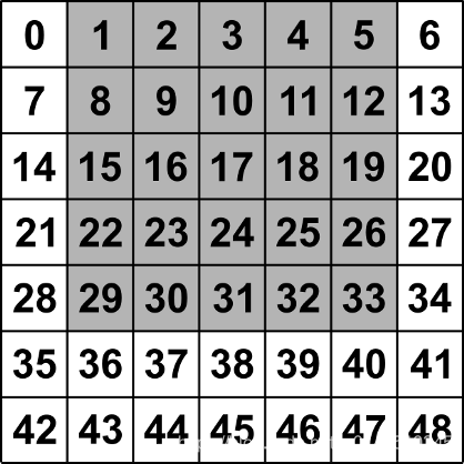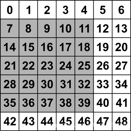 然后使用arange創建一個7×7的數組,值范圍從1到48。另外,創建另一個包含無數據值的數組,該數組的形狀和數據類型與初始數組相同。在本例中,我使用-1作為無數據值。