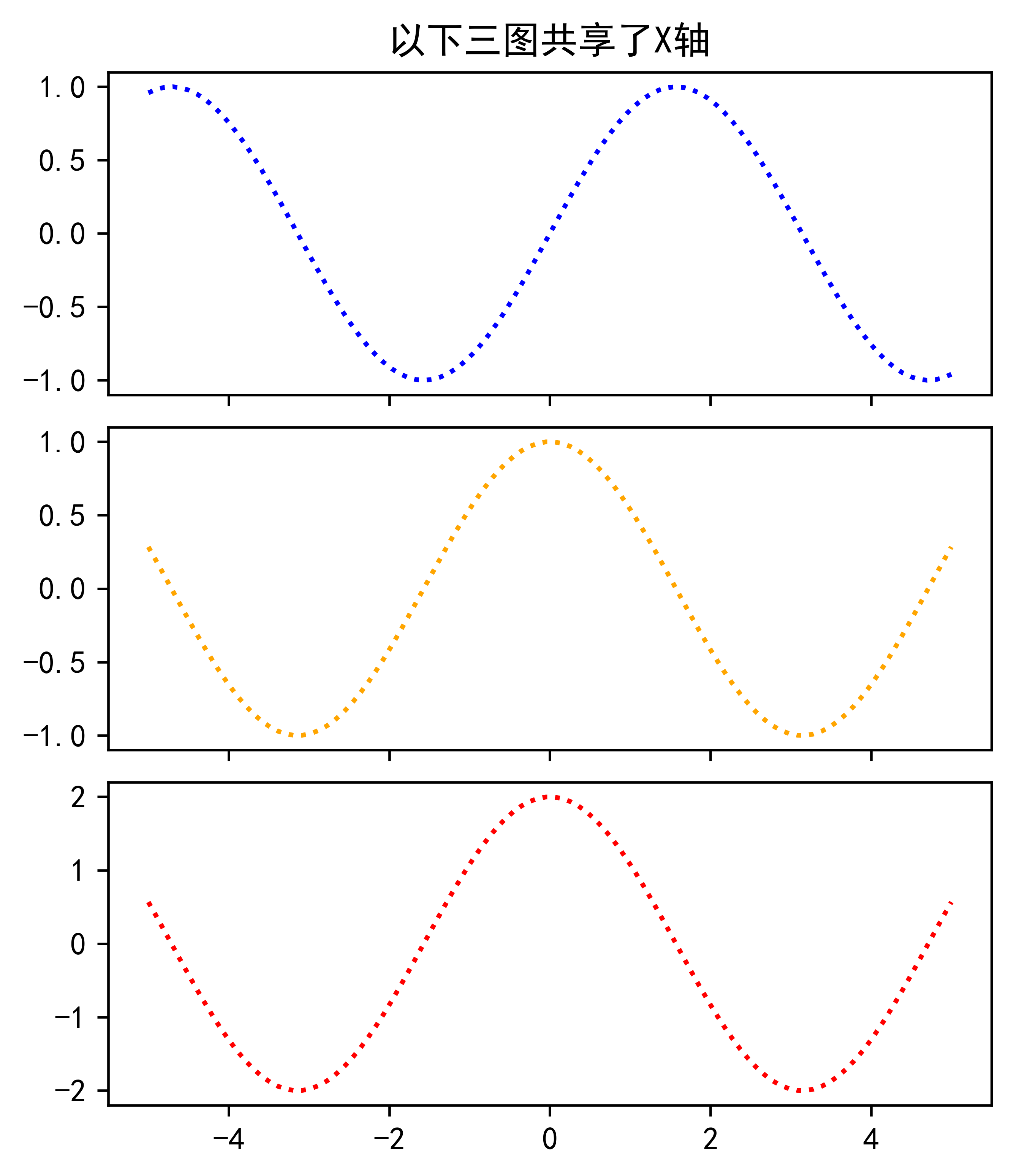 ax1.set_title('以下三圖共享了X軸') # 其實(shí)更合理的添加圖名時(shí)figure.subtitle()