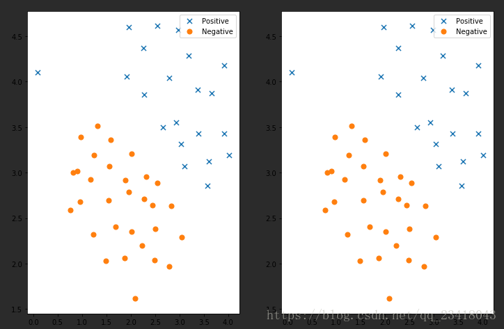 ax[1].scatter(negative['X1'], negative['X2'], s=50, marker='o', label='Negative')