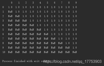 # 按行刪除:所有數據都為空值,即刪除該行 print(d.dropna(axis=0, how='all'))