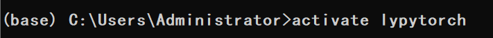 2.輸入activate lypytorch進入虛擬環境。如果不想使用虛擬環境了,可以輸入conda.bat deactivate來關閉當前虛擬環境(直接使用deactivate lypytorch不太行,會提示錯誤,一個坑點)。