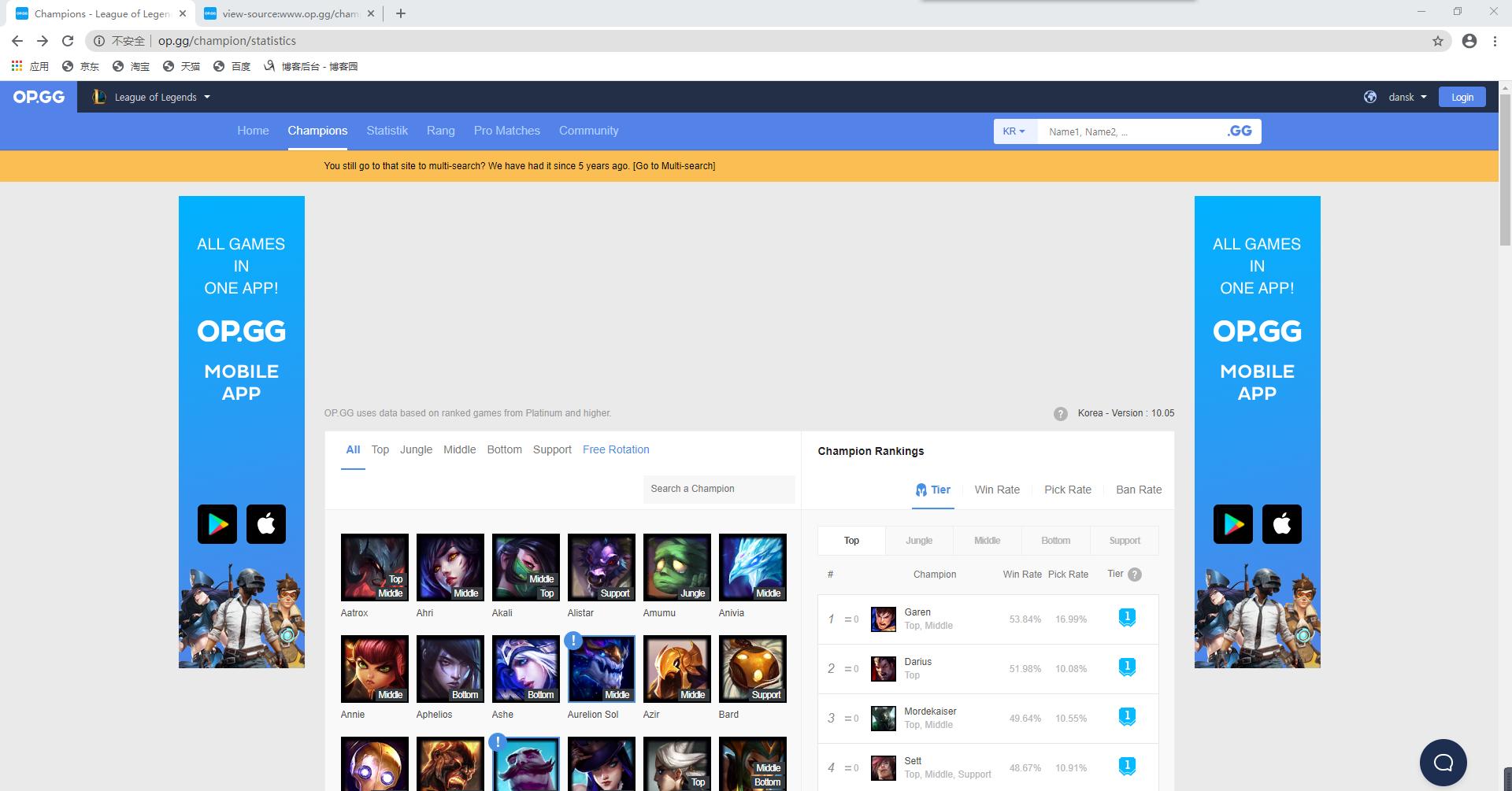 本次爬取網(wǎng)站為opgg,網(wǎng)址為:” http://www.op.gg/champion/statistics”
