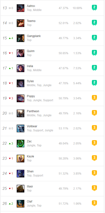 由網(wǎng)站界面可以看出,右側(cè)有英雄的詳細(xì)信息,以Garen為例,勝率為53.84%,選取率為16.99%,常用位置為上單