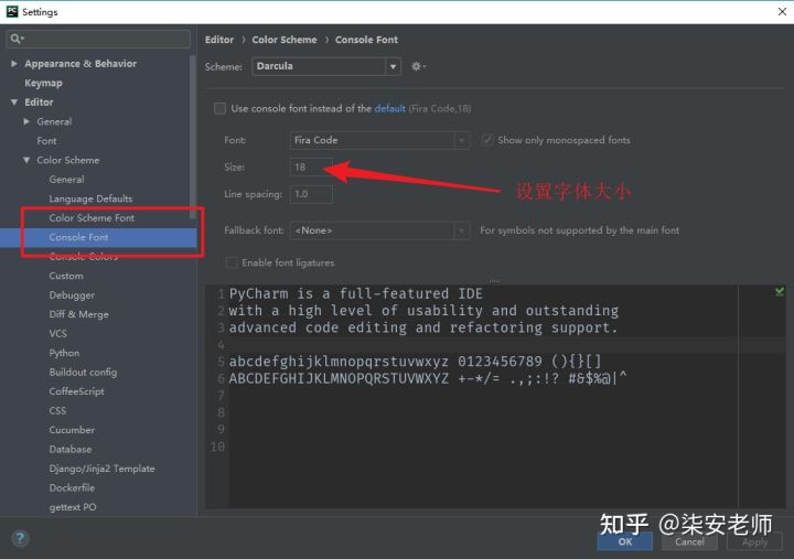 pycharm設(shè)置字體