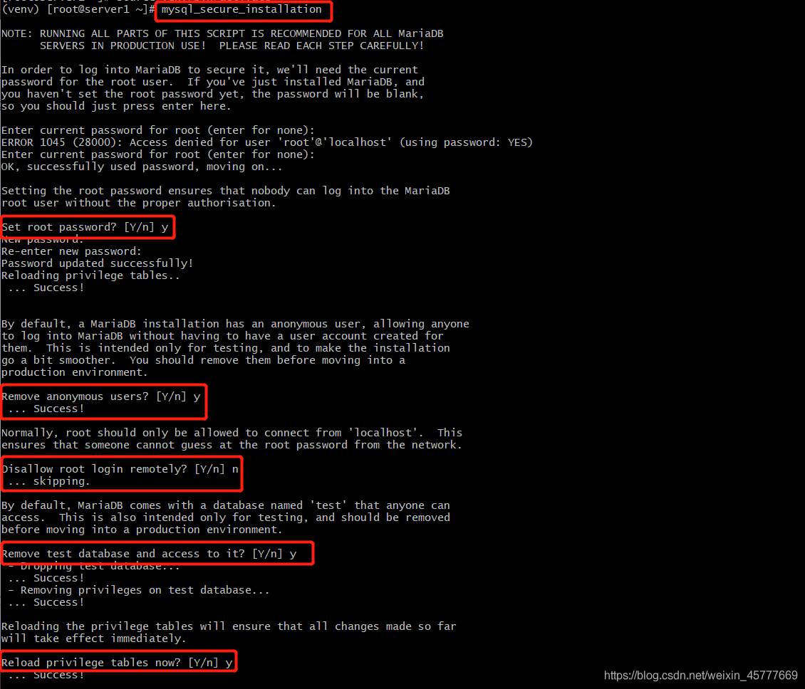 (venv) [root@localhost cmdb]# mysql_secure_installation ## 初始化