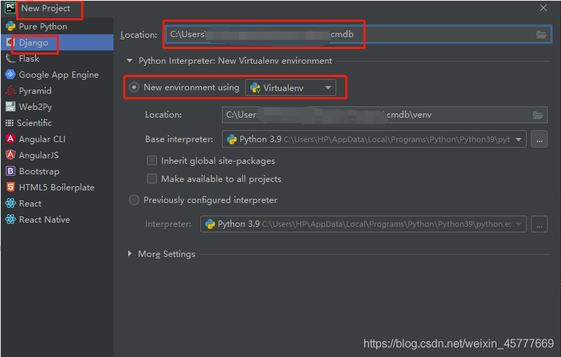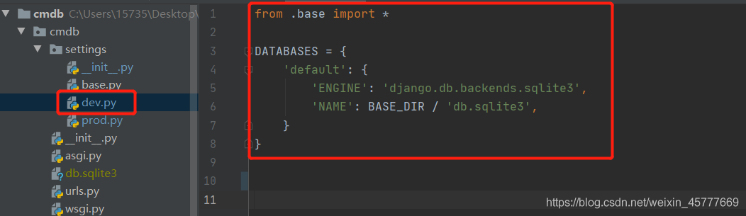 在 cmdb 下創建包 settings(作為配置文件存放地),將原始基本配置文件settings.py 移動到此包下,并重命名為 base.py