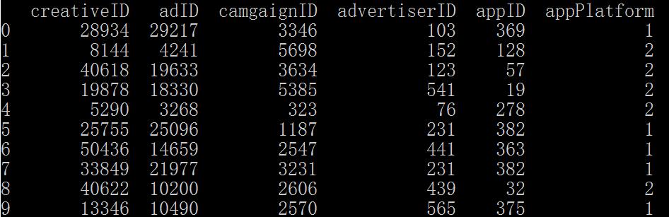 對(duì)于數(shù)據(jù)集df,我們想過(guò)濾掉creativeID(第一列)中ID值大于10000的樣本。