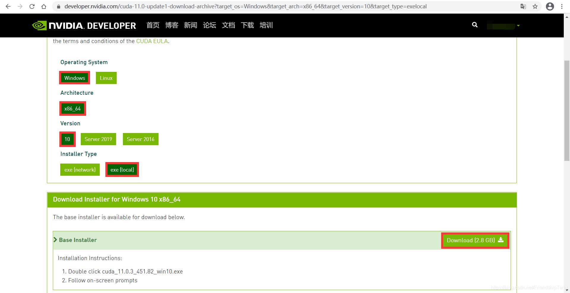 雙擊cuda_11.0.3_451.82_win10.exe文件