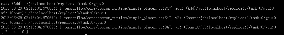 ConfigProto() 中參數 log_device_placement=True 會打印出執行操作所用的設備,以上輸出:
