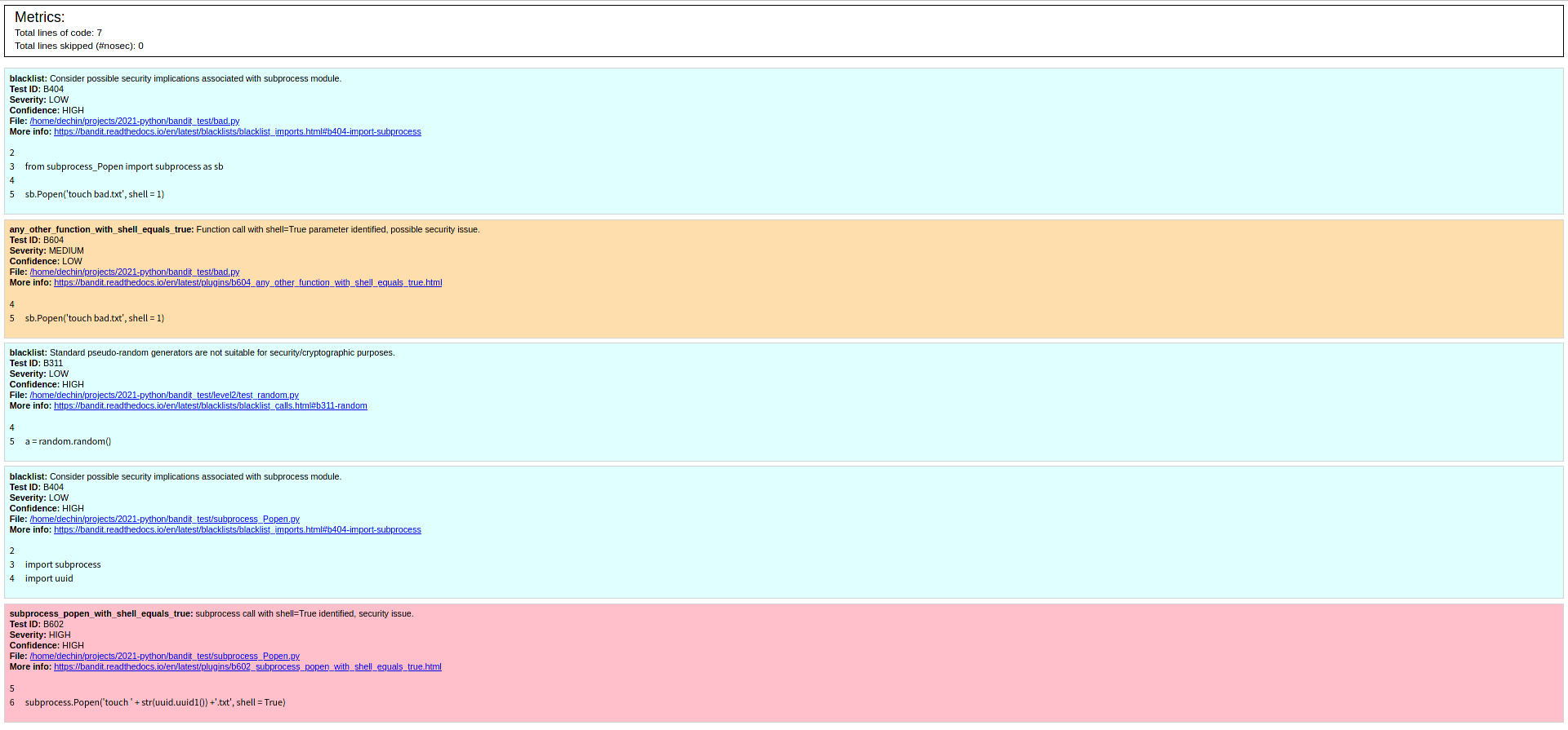 [dechin@dechin-manjaro bandit_test]$ bandit -r . -f html -o test_bandit.html
