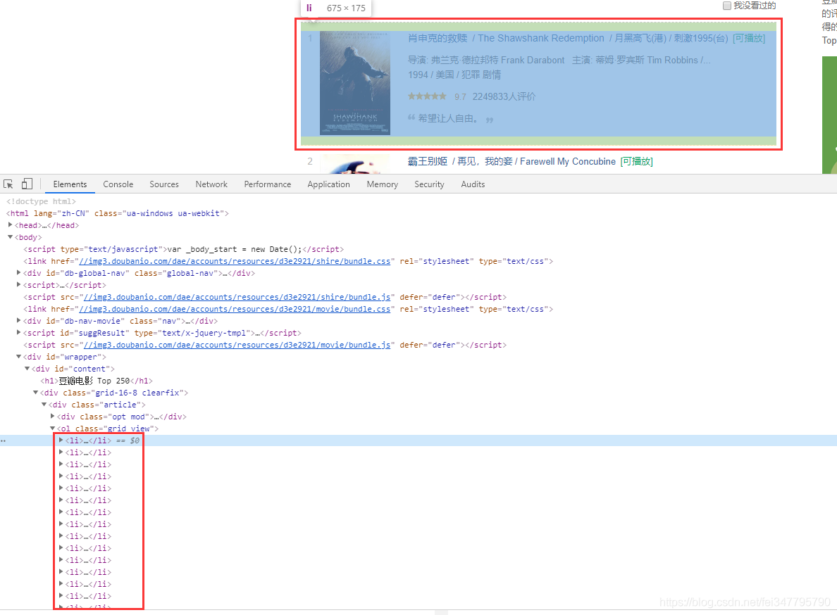 所有的電影信息都包含在 li 標(biāo)簽當(dāng)中。