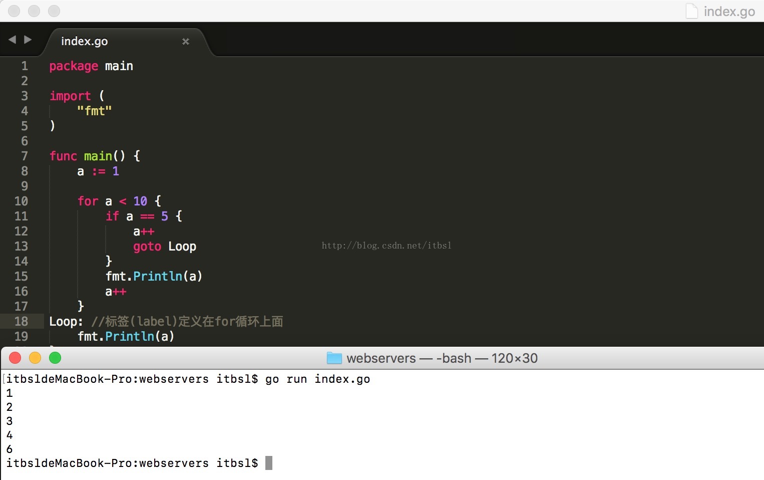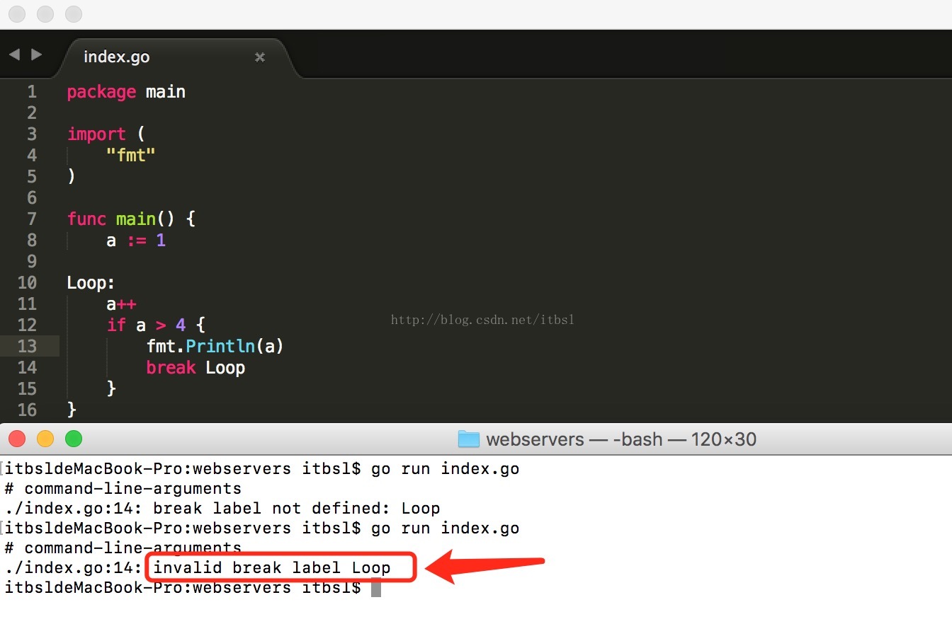 與其他語言一樣,Go語言也支持label(標簽)語法: