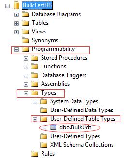SqlParameter catParam = cmd.Parameters.AddWithValue("@NewBulkTestTvp", dt);