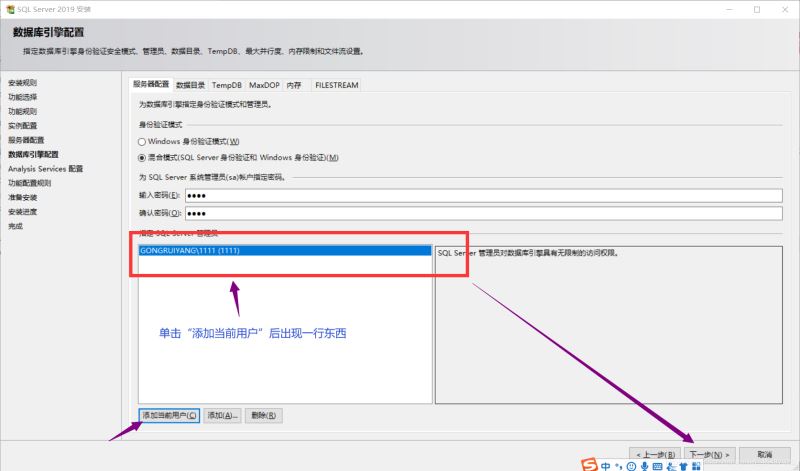 14.填好密碼后,點擊添加用戶,出現下面界面,再單擊下一步
