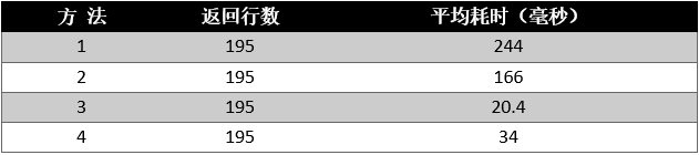 這里通過一個簡單的表格,對方法1至方法4作比較。