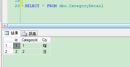 附Category 表和CategoryDetail 表的結果及插入數據的腳本: